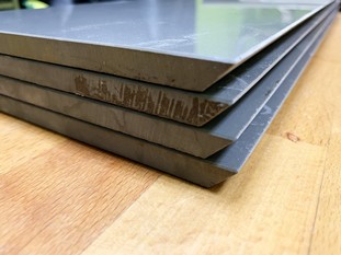 Количество листов, при гидроабразивной резке металла подбирается опытным путём для того, чтобы не было потерь в точности и качестве реза у деталей, листов, которые расположены снизу.